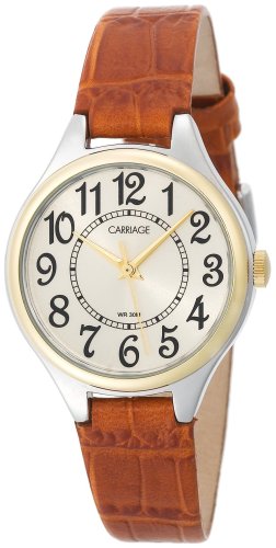 -. Title : Carriage Women's C3C401 Two-Tone Round Case Champaign Dial Brown Croco Leather Strap Watch