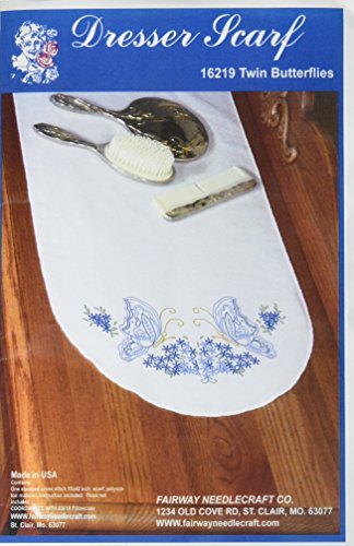 Fairway 16219 Dresser Scarf, Twin Butterfly Design, White, Perle Edge