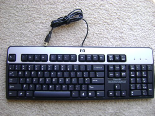 Genuine HP Hewlett-Packard KU-0316 Black/Silver USB Wired 104-Key Layout Keyboard Part Number: 434821-001 Model Number: KU-0316