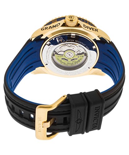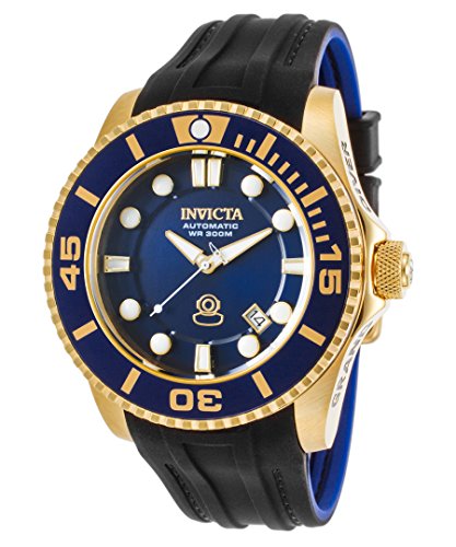 -. Binding : Watch -. Brand : Invicta -. Color : blue -. Department : mens -. EAN : 0886678250110 -. Feature : 300m; precise 24 jewels automatic movement; date window between 4:00 and 5:00; unidirectional 18k gold ion-plated bezel with blue top and rim; exhibition case back / Blue dial with gold tone and white hands and hour markers; luminous; screw-down crown; flame fusion crystal; 18k gold ion-plated stainless steel case; black silicone strap with blue backing / Automatic-self-wind Movement / Case Diameter: 47mm / Water resistant to 30m (100ft): in general, withstands splashes or brief immersion in water, but not suitable for swimming or bathing -. Label : Invicta -. Manufacturer : Invicta -. Model : 20203 -. MPN : 20203 -. NumberOfItems : 1 -. PackageQuantity : 1 -. PartNumber : 20203 -. ProductGroup : Watch -. ProductTypeName : WATCH -. Publisher : Invicta -. Studio : Invicta -. Title : Invicta Men's 'Pro Diver' Automatic Stainless Steel and Silicone Casual Watch, Color:Black (Model: 20203) -. UPC : 886678250110