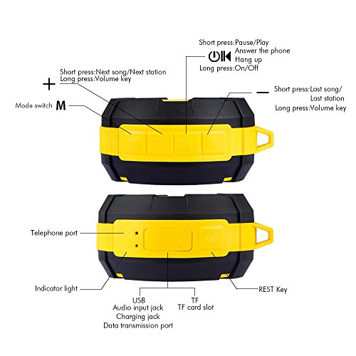 TRUE THREE ANTI-OUTDOOR, ADVANCED INDUSTRIAL SILICONE SHELL ---- Designed as a Outdoor Speaker and Shower Speaker - Unique Rugged Square Design with Waterproof speaker, Shockproof speaker, Dustproof speaker and functions make it suitable for Outdoors and Shower. Please note the wireless speaker cannot withstand being partially or fully submerged in water or being dropped into water.