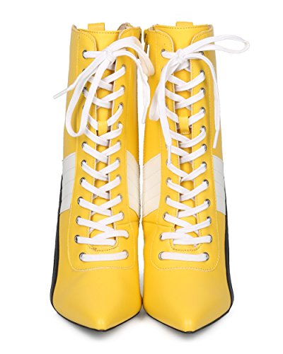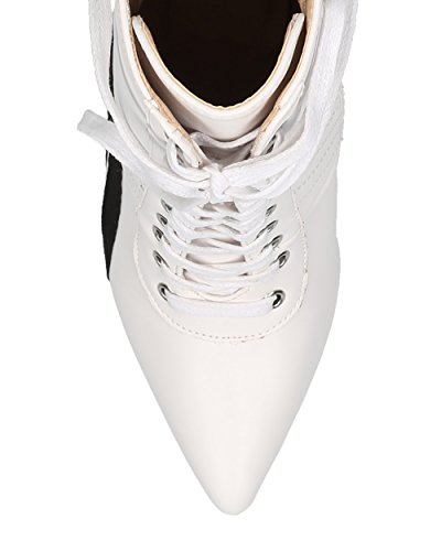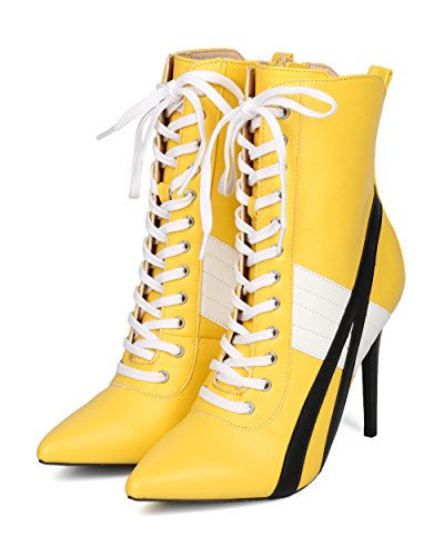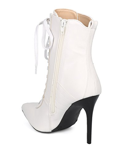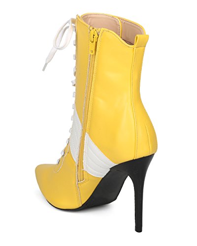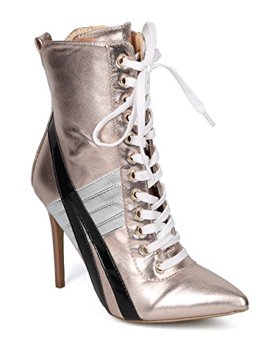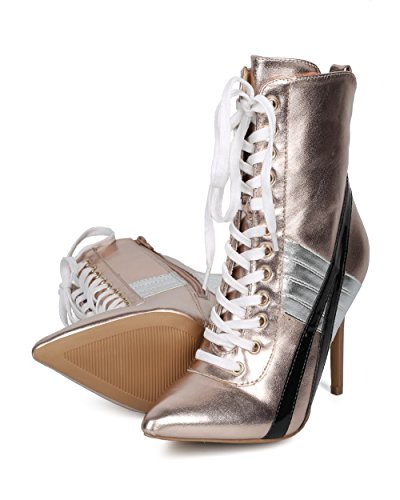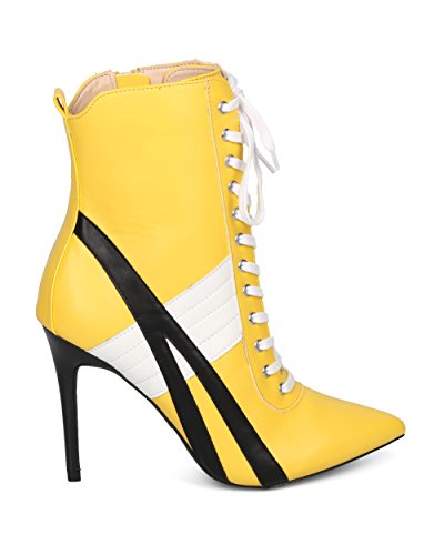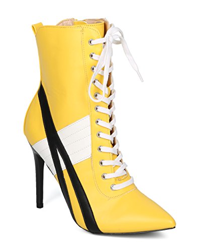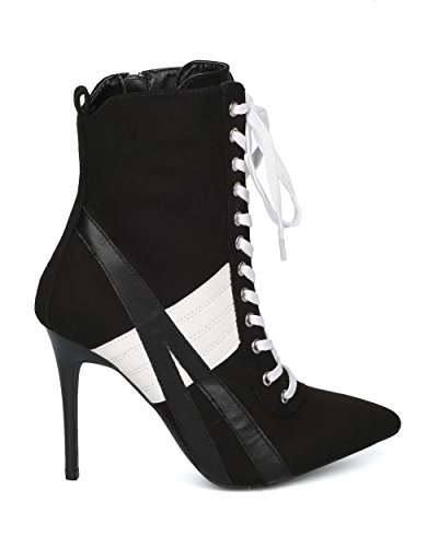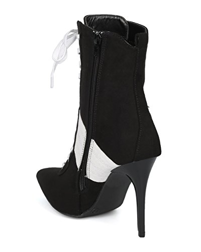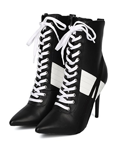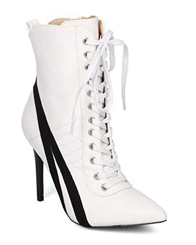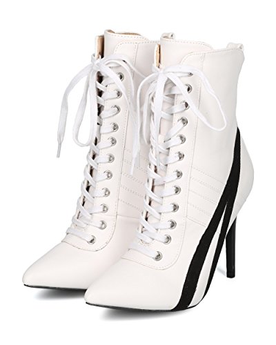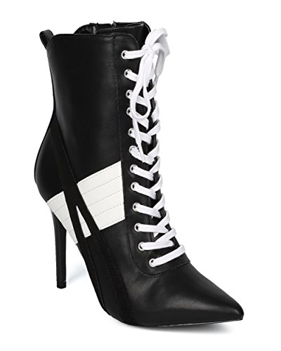 | (Alrisco)/Women's/Boots/DIRECT FROM USA/Alrisco Women Pointy Toe Sports Stripe Lace Up Stiletto Bootie - HF17 By Wild Diva Collection |