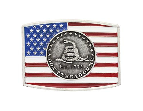 Studio : Montana Silversmiths Publisher : Montana Silversmiths Binding : Apparel Product Description Show off you love of history with this belt buckle from Montana Silversmiths. This buckle is designed with an American flag, silver tone stars, and a Gadsen seal complete with a coiled snake, and the 'Don't Tread on Me' text. Wear this buckle from Montana Silversmiths where modern meet Americana. 0