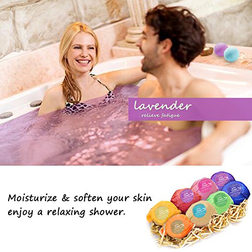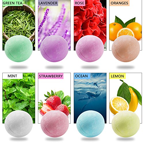 Weight:Each about 2.1oz Item Diameter: 1.96 in Ingredient: baking soda, citric acid, cellulose, Yuan Mingfen. Efficacy: exfoliating, to dead skin, fine pores, anti-fatigue, sterilization and other itching. The 8 scents: -Green Tea -Lavender -Rose -Oranges -Mint -Strawberry -Ocean -Lemon 0