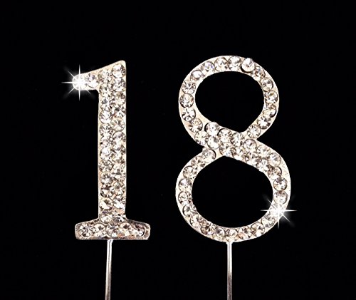 18th Birthday Number Cake Topper with Sparkling Rhinestone Crystals - 1.75