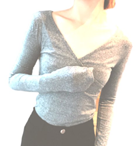 -. Title : カシュクール Vネック 上品 エレカジ 長袖 ストレッチ 無地 レディース Tシャツ カットソー トップス (L, トップグレー)