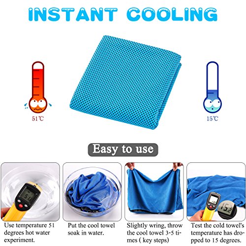 Instant Cooling Relief Cooling Towel: Soft texture, Ultra-thin, absorb sweat, Reusable, energy saving and environmental protection, not easily color fade. Can be used as neck wrap headband or cooling bandana. Make you feel cool and comfortable for several hours when you do outdoor sports