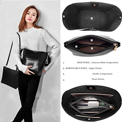 BIG CAPACITY: Internal with 1 Generous Main Pocket Can Easily Fit Your 11" Laptops. The Inside Has a Removable Purse for the IPAD, phone, makeup, wallet, etc. Exterior with 1 Metal Magnetic Muckle Pocket in Front, 2 Open Top Closure Pockets on Two Sides for Holding the Small Daily Things.