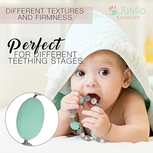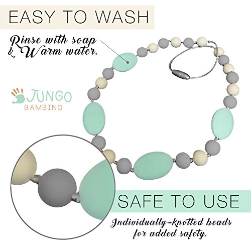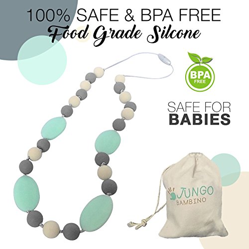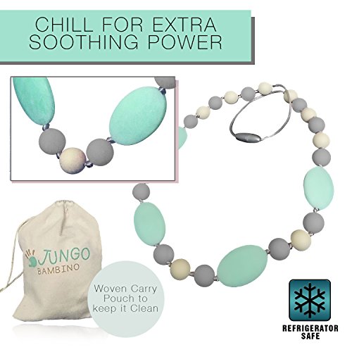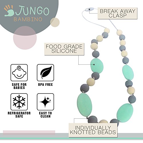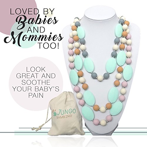 JUNGO BAMBINO Silicon Teething Necklace For Mom To Wear and Baby To Chew. BPA Free. Variety Of Colors (Blueberry and Mint)
