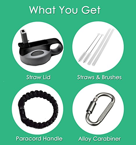 ✔ LID & 2 STRAWS & 2 STRAW BRUSHES & Paracord Handle & Alloy Carabiner INCLUDED: Get the lid, and comes with two separate straws and brushes, trim them at a desirable length depending on your Hydro Flask; Detachable Paracord Loop Handle allows a comfortable and secure carrying solution; The Alloy Carabiner is great to hold items, Idea for hanging on the bag and ropes etc.