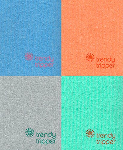 Swedish Dishcloths, Reusable Set of 4-B (FOUR) Solid Mixed Colors (Blue, Grey, Orange, Green)