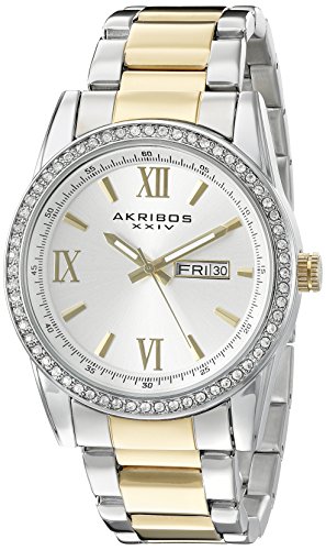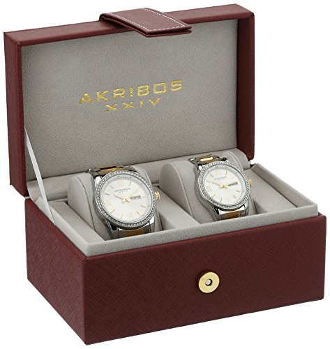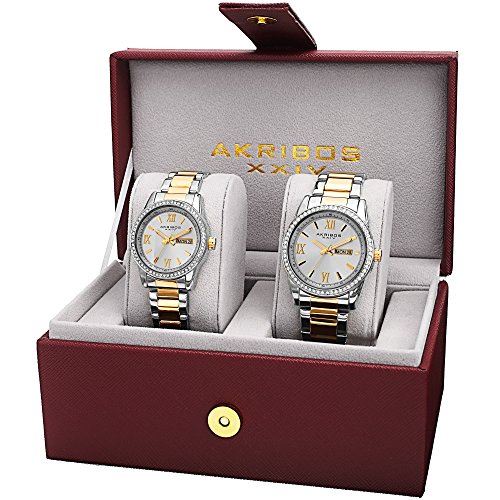 Akribos XXIV Men's and Women's AK888TTG Watch with Silver Dial and Two Tone Bracelet Ensemble Set