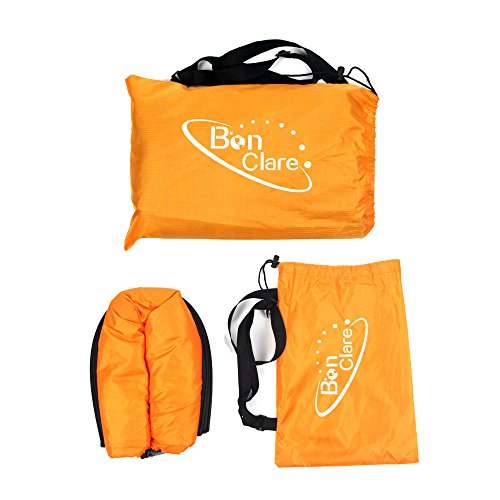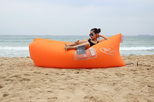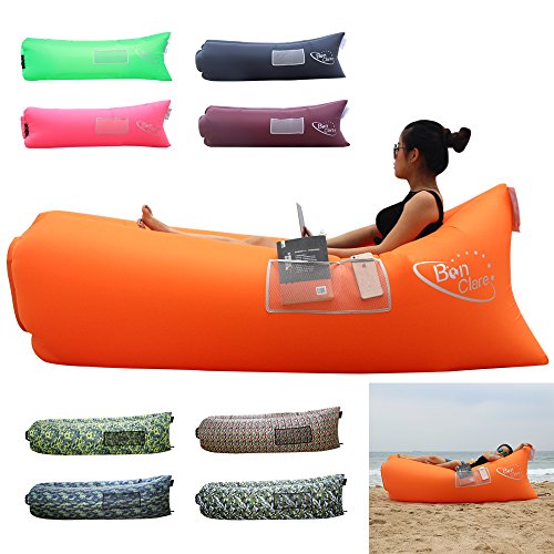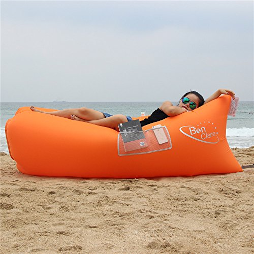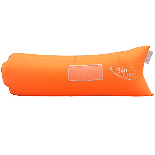 Quick Inflation with a Fan or on breezy Day: Breezy day is required. A little hard to inflate without wind. At home, find a fan; everything will be easy with the fan. Just turn on the fan, let the wind injecting into the air lounge, cinch quickly after inflating; while outside, you should run against the wind to let the air (wind) in. Just remember, after you filled the air, you should roll the four strips at least five laps, and then it is most tight and not easy to leak. The length will be shorter. Easy inflate with little wind https://www.youtube.com/watch?v=tKR5xh7Q2RI https://www.youtube.com/watch?v=rQdnrGKXu04 Kind prompt: Please note that BonClare is the registered mark registered in USPTO. E-play is our official store. All other stores sell fake products. Please choose the right store: E-play to avoid your dissatisfaction, loss and dispute. 0