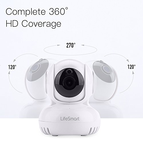 -. Feature : 1080P High-definition, 135 degree wide-angle advanced glass lens combined with 270 degree horizontal & 120degree vertical rotation range create a complete 360 degree coverage. Advanced night vision with viewing distance to 5-10 meters in pitch dark with no light pollution, so your baby or pet will not be disturbed by LED glare. / 30 Sec Wi-Fi Setup Via IOS Or Android Devices With LifeSmart App.When you are out of home,you can use your smartphone to make sure your home is safety by the LifeSmart App / 103.5 x 85 x 85mm in white color , small size but high quality finishing . It does not need large space , you can just put it on the corner or hang it on the ceiling . It will protect your room . / Built-in speaker and microphone, you can hear what others says and you can also talk to the one who you see on camera. Press the talking button and you can talk to your family and anyone else you are facing . / Local storage: Secure your videos on a micro SD card allowing you to access your video content and history anytime. A 64GB MicroSD can hold up to 1-month--long video with continuous or motion detected recordings.Card slot record directly to SD supported for 64 GB Max
