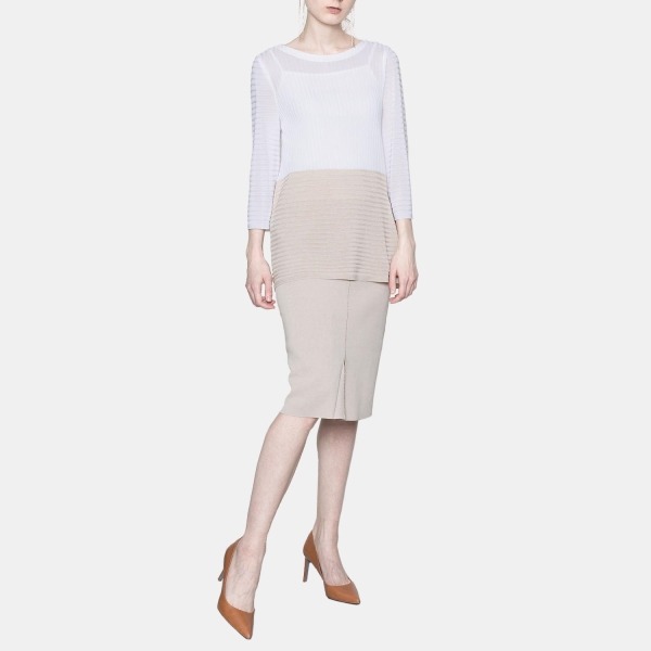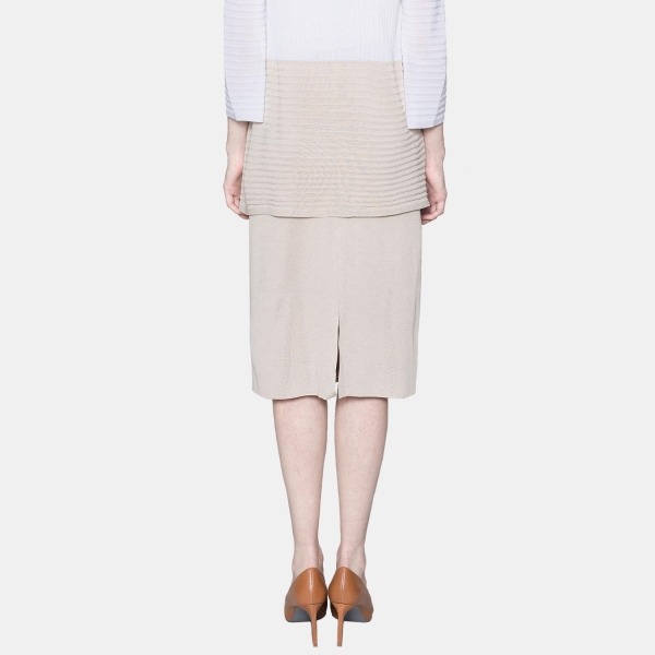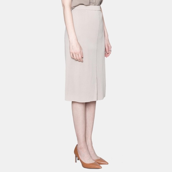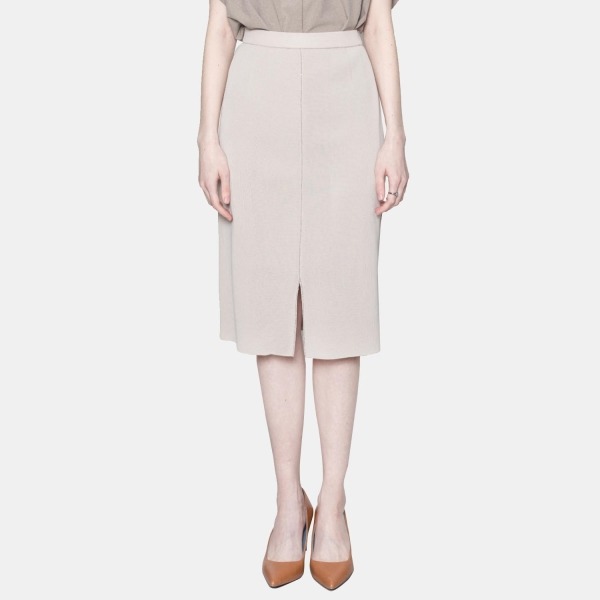 세밀하고 촘촘하게 짜여진 니트 조직이 돋보이는 H라인 스커트입니다. 전면에 볼체인을 넣어 움직임에 자연스러운 포인트가 되며, 웨이스트 라인은 밴딩으로 처리하여 편하게 착용 가능한 아이템입니다.