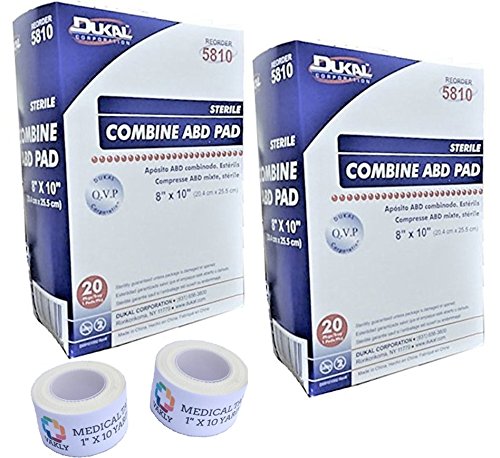 Sterile 8x10 Combine Abdominal Pads 2 Packs Of 20 + 2 Rolls Of Vakly Medical Tape (2)