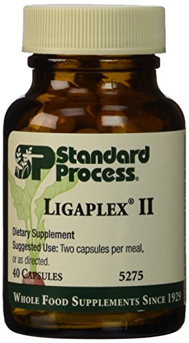 -. Binding : Health and Beauty -. Brand : Standard Process -. EAN : 0812122011198 -. Feature : Muscle, bone, joint and ligament support -. IsAdultProduct : 0 -. Label : Standard Process -. LegalDisclaimer : While we work to ensure that product information is correct, on occasion manufacturers may alter their ingredient lists. We recommend that you do not solely rely on the information presented and that you always read labels, warnings, and directions before using or consuming a product. For additional information about a product, please contact the manufacturer. Content on this site is for reference purposes and is not intended to substitute for advice given by a physician, pharmacist, or other licensed health-care professional. You should not use this information as self-diagnosis or for treating a health problem or disease. Contact your health-care provider immediately if you suspect that you have a medical problem. Information and statements regarding dietary supplements have not been evaluated by the Food and Drug Administration and are not intended to diagnose, treat, cure, or prevent any disease or health condition. Amazon assumes no liability for inaccuracies about products. -. Manufacturer : Standard Process -. MPN : 5275 -. PackageQuantity : 1 -. PartNumber : 5275 -. ProductGroup : Health and Beauty -. ProductTypeName : HEALTH_PERSONAL_CARE -. Publisher : Standard Process -. Studio : Standard Process -. Title : Standard Process Ligaplex II 40 Caps -. UPC : 812122011198