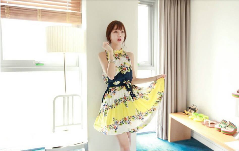 Color: Picture color (with belt oh) Material: silk chiffon wrinkle Size: Free