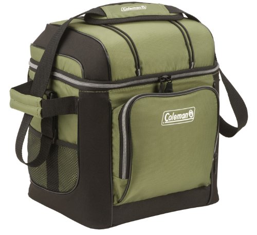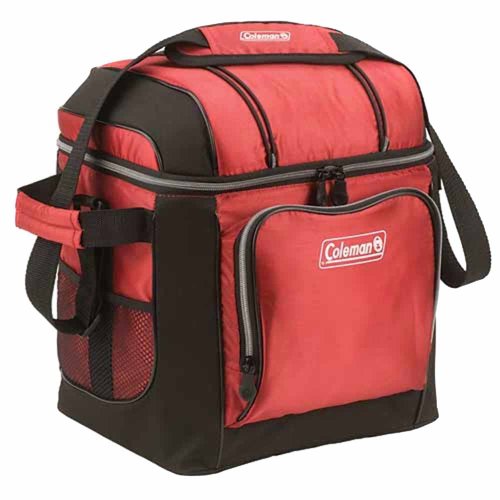 The Coleman 30-Can Soft Cooler goes with you to picnics, BBQs, camping, sporting events, tailgates and beyond. It holds 30 cans inside, and features plenty of extra storage space in its front zippered pocket, side mesh pockets, and mesh pocket in the lid. There are even bungees on the lid for stowing more extras! Sporting an adjustable shoulder strap, the cooler is soft on the outside for comfortable carrying, and has a hard plastic liner inside to protect your food from being crushed. The liner material is FDA approved for food contact, and is removable for easy cleaning. The Soft Cooler provides antimicrobial protection, to resist odors, mold, and mildew.Feature