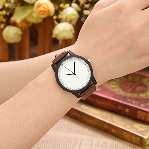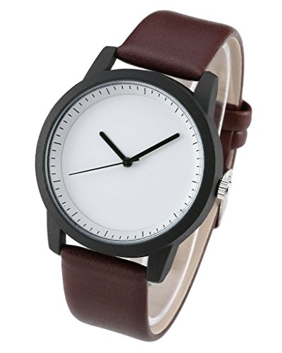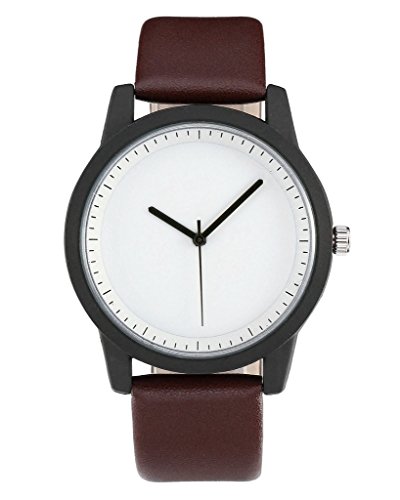 Top Plaza Unisex Simple Fashion Blank Dial Analog Quartz Black Alloy Case PU Leather Watch