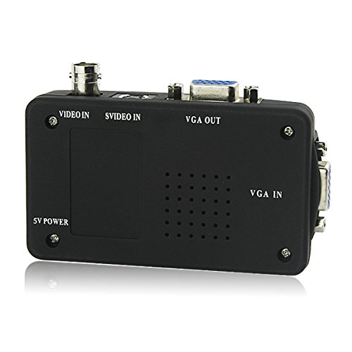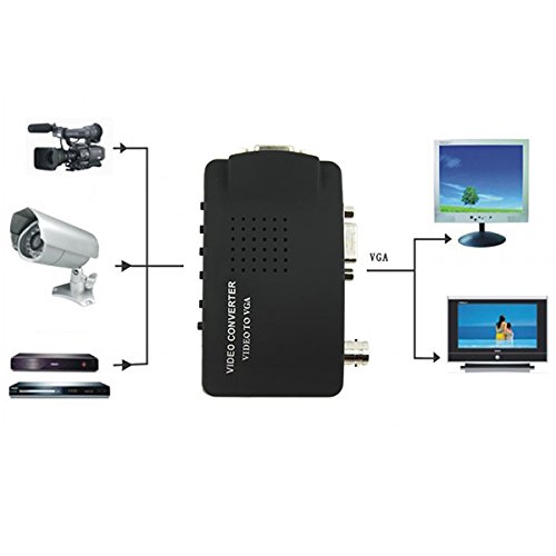 Studio : SQDeal Publisher : SQDeal Product Description SPECIFICATIONS: This BNC to VGA video converter can support high resolution (up to 1920 x 1080) video picture. The video converter can provide high quality picture and give stable image output to VGA output device. It is easy to install and operate, instantly switch the source between Video, S-Video and PC with a single button and turn your monitor in to a high resolution picture output. Specifications: Input: 1xBNC, 1xS-Video, 1xVGA(connect to PC or notebook), Connect to AGP Output: 1xVGA, Connect to monitor or projector Video In: Connect to Video Camera / VCD / DVD / Game Console S-video In(YPbPR): Connect to Video Camera / VCD / DVD / Game Console Resolution of VGA signals: 800x600@60Hz, 800x600@75Hz, 1024X768@60Hz,1280X1024@60Hz, 1440X900@60Hz, 1680X1050@60Hz,1920X1080@60Hz, 1920X1200@60Hz AV/ S-Video Input: Auto-Detect PAL, NTSC VGA Input: BYPASS DC 5V: Connect to AC adapter Supports Signal: Video, S-video, VGA Support System: PAL / NTSC System Requirements Support PC and MAC computer. No need to install Device Driver, plug and play. Compatible with CRT monitor and LCD monitor Material: Plastic Color: Black Net Weight: 0.068kg/0.031pound Dimension: 92x55x19mm/ 3.62x2.17x0.75inch Package: PE bag Package include: 1 x BNC to VGA Video Converter 1 x VGA Signal cable 1 x S-Video cable 1 x AC Power adapter 1 x User Manual Shipping: Please make sure your shipping address is current and correct when you order, ZIP CODE matters also.
