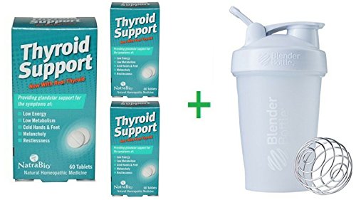 NatraBio, Thyroid Support, 60 Tablets (3 PACKS) + Sundesa, BlenderBottle, Classic With Loop, White, 20 oz