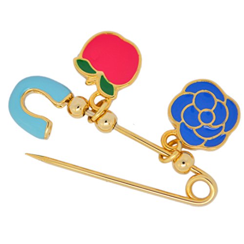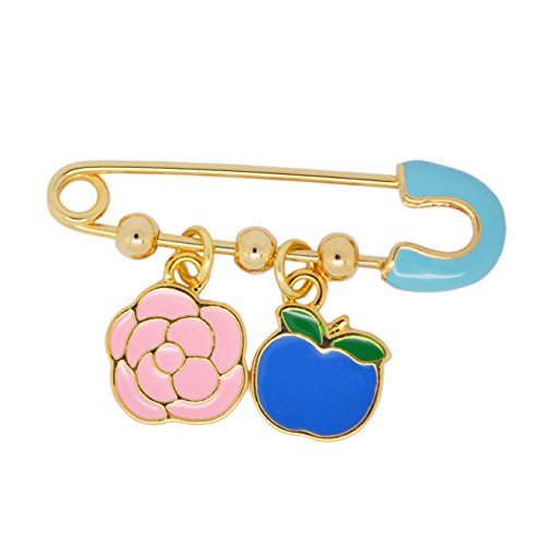 -. Title : KINGSIN Cute Enamel Safety Pin Apple Flowers Charms Gold Brooches for Girls