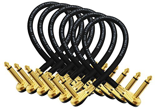 6 Units - Lava Mini ELC (Black) - 12 Inch - Guitar Bass Effects Instrument, Patch Cable with Premium Gold Plated ¼ Inch (6.35mm) Low-Profile, Right Angled Pancake type TS Connectors