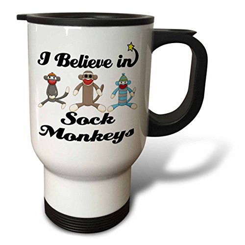 3dRose I Believe in Sock Monkeys Stainless Steel Travel Mug, 14-Ounce