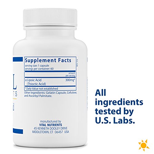 Lipoic Acid helps to produce energy in muscles. It is a necessary component of the glucose-pyruvate-ATP pathway, creating energy production from calories. It is a powerful antioxidant and plays an important role in supporting healthy vision and nerve function. Lipoic acid is a potent liver detoxification supporter and protector. Vital Nutrients mission is to manufacture superior quality nutraceuticals that exceed both industry and government standards and provide clinically effective results. They provide over 200 science-based and clinically effective products. They have a comprehensive quality assurance program to ensure that purity and potency is consistently met on every product that they manufacture. Vital Nutrients uses independent U.S. ethical laboratories to test all raw materials and finished products. Each raw material is tested, regardless of origin, for purity and potency. All finished products are tested through a real time stability protocol for expiration date validation. They are an FDA Inspected facility that exceeds FDA cGMPs, and a member of the NPA.Feature
