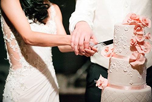 Cake and knife serving set that adds romance to a wedding reception, anniversary party, or Valentine's Dinner
