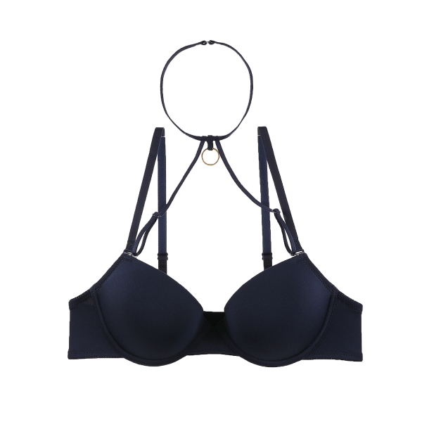 고급스러운 딥 네이비 컬러를 베이스로 스트링에 링포인트를 사용한 군더더기 없는 베이직 초커 브라.(와이어있음.)
