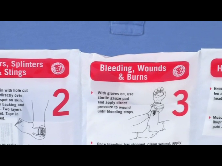 EZ Care System = supplies organized by type of injury. Easy Instructions right on the pouch.