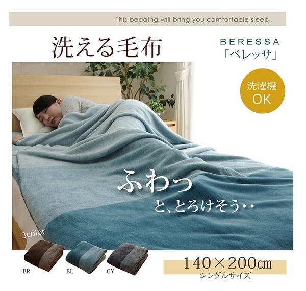 【商品名】毛布 ブランケット シングル 洗える 寝具 『ベレッサ』 ブルー 約140×200cm