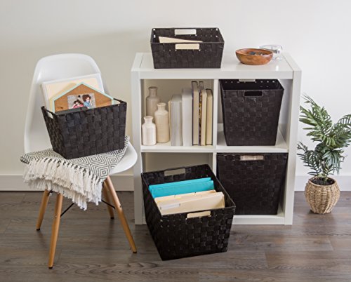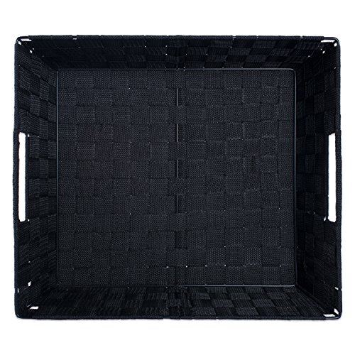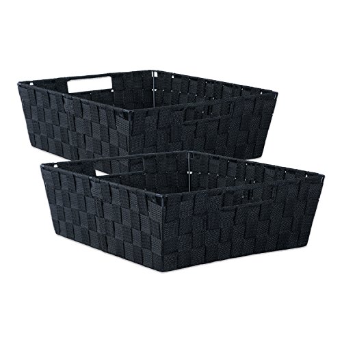 DII Durable Trapezoid Woven Nylon Storage Bin or Basket for Organizing Your Home, Office, or Closets (Tray - 13x15x5") Black - Set of 2