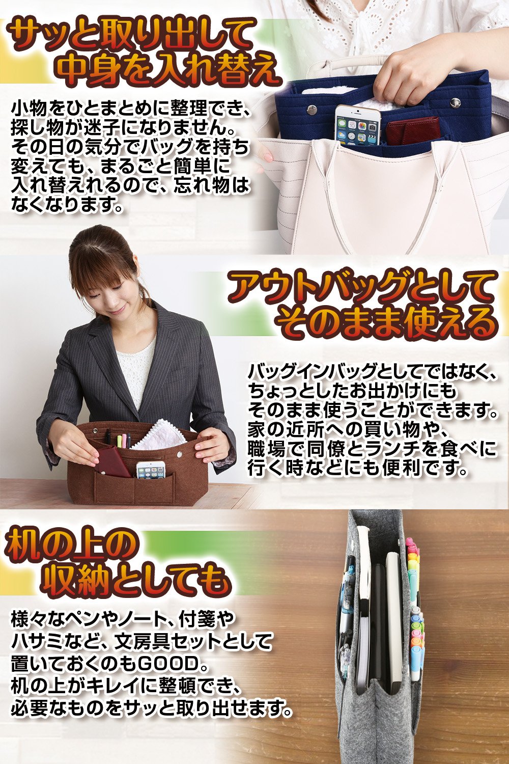 You can collect small items together, so when you think about changing the carrying bag, you can take out the contents and replace it in a moment.