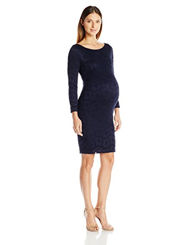 Ingrid & Isabel Women's Boat Neck Lace Maternity Dress, Black/Nude, Large