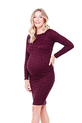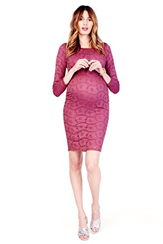 An Ingrid & Isabel maternity dress made from floral stretch lace. The boat neckline and 3/4 sleeves create a sophisticated, ladylike look. Sand-tone lining.