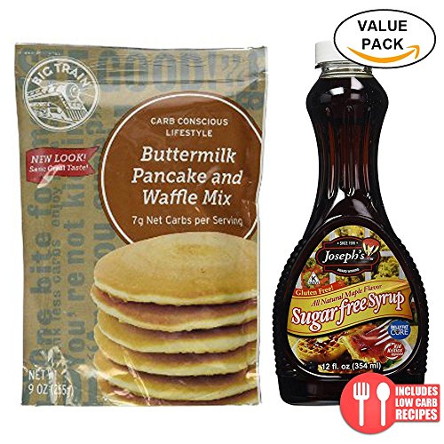 Big Train Buttermilk Pancake & Waffle Mix is an excellent alternative to high carb pancake mixes. From BigTrain, "We Cut Carbs, Not Healthy Ingredients. Unlike other low carb products that use artificial sugar alcohols. Big Train's all natural ingredients are easy on your digestive system. Real Ingredients. Real Taste. The natural low carb solution." Joseph's is made from all natural maple flavor, our Sugar-Free Maple Syrup is gluten free, low carb and safe for diabetics. Our Syrup has a thick consistency unlike other watery diet syrups.
