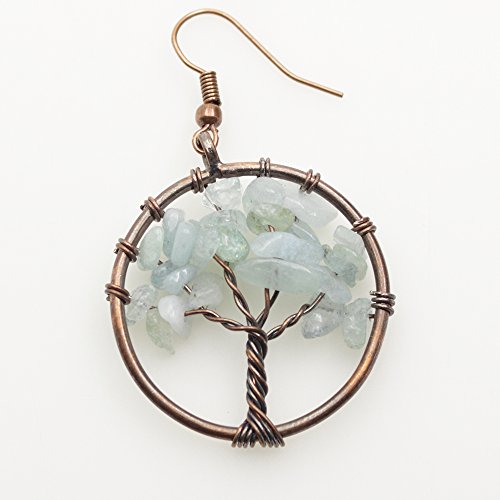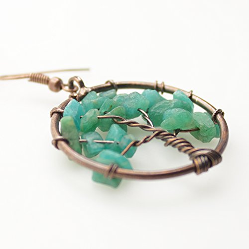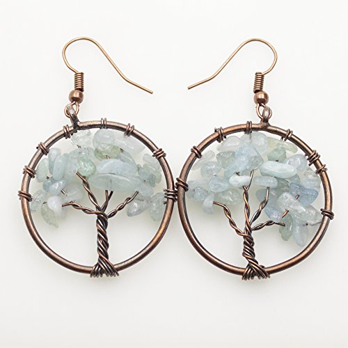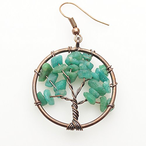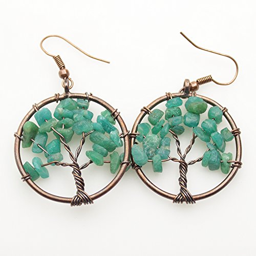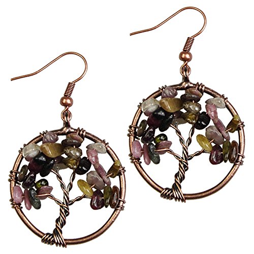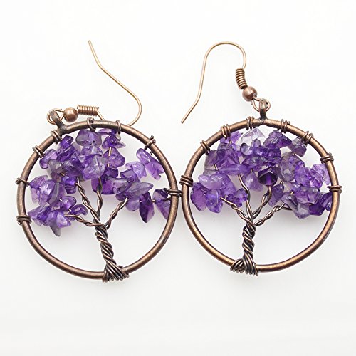 -. Title : Dangle Earrings, BAYUEBA Tree of Life Chakra, Natural Amethyst Rose Quartz Peridot Lapis Lazuli Jewelry