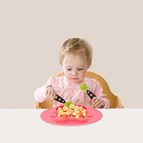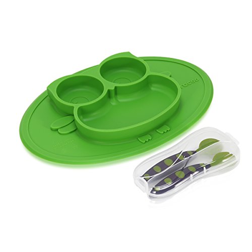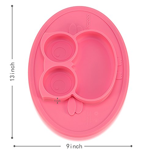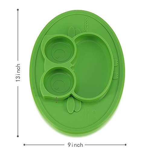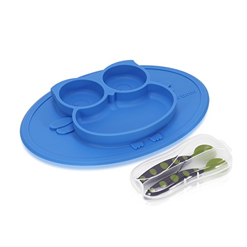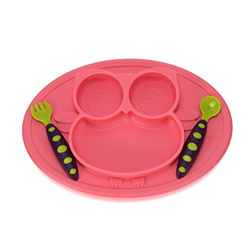 -. Title : One-Piece Baby silicone placemat Kirecoo Owl Plates Built in Plate and Bowl + One Baby Fork and Spoon Set For Early Promotes Independence
