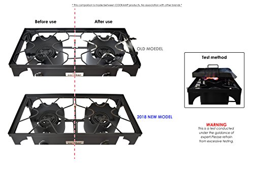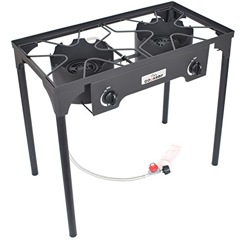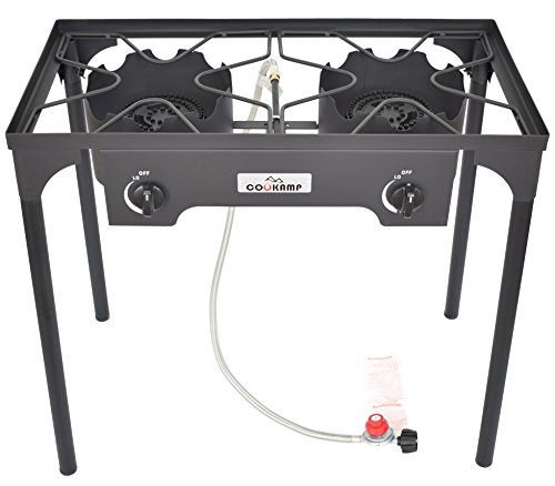 COOKAMP High Pressure 2-Burner Outdoor Camp Stove with 0-20 PSI Adjustable Regulator and Steel Bradied Hose [ 2018 New Model ] SA2500