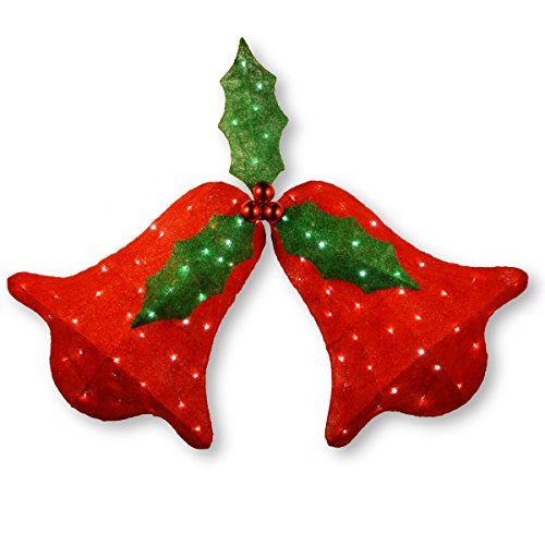 National Tree 45 Inch Sisal 2D Red Bell with Holly Leaves and 91 White LED Lights (MZB-303-45)