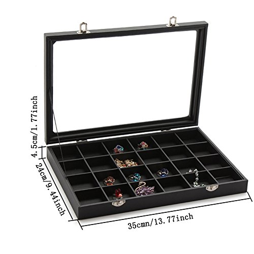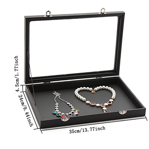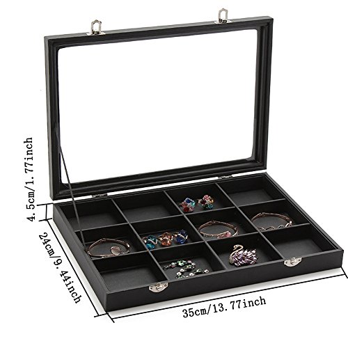 -. Binding : Kitchen -. Brand : Qise -. Feature : Jewelry Box Size: 13.77" x 9.44" x 1.77" (35cm * 24cm * 4.5cm) / This jewelry display will add a modest touch of elegance to any room its placed it. It's also ideal for store front display cases / Novel Box Premium Glass Top Display boxes are designed to help showcase and portray items so they stand out. Made with real glass, all of our Black Leatherette boxes come with metal clasps in the front and metal hinges in the back. Their compact size makes them ideal for travel and the metal latch keeps your items in a secure atmosphere free from dust / MAKES A GREAT GIFT - Perfect for any home that needs a convenient way to store jewelry / Package Included: 1 x Jewelry Box (Jewelries Not Included) -. IsAutographed : 0 -. Label : Qise -. Manufacturer : Qise -. Model : JM-10065 -. MPN : JM-10065 -. PartNumber : JM-10065 -. ProductGroup : Home -. ProductTypeName : HOME -. Publisher : Qise -. Studio : Qise -. Title : Qise 12/24 Section Earrings Rings Necklaces Bracelet Leather Glass Top Jewelry Box Organizer
