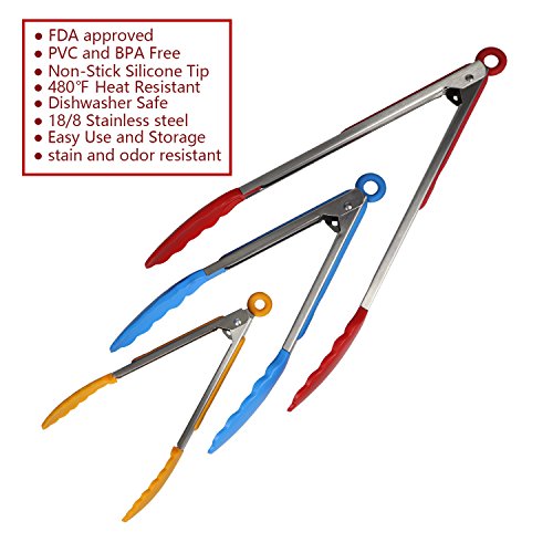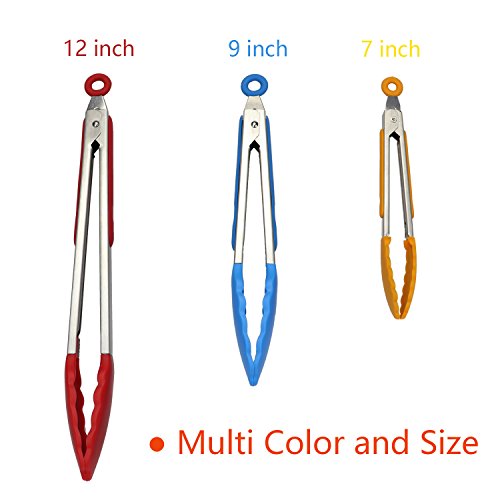 Sougem Kitchen Tongs set-7, 9, 12 Inch, Heavy Duty, Heat Resistant and Non-Stick Silicone Tip and Stainless Steel Clip for salad,Cooking,Baking and Barbecue.(Multi color,3 pieces)
