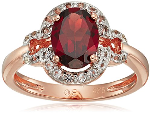 -. Title : 2 Micron Rose Gold Plated Sterling Silver Garnet and White Topaz Ring
