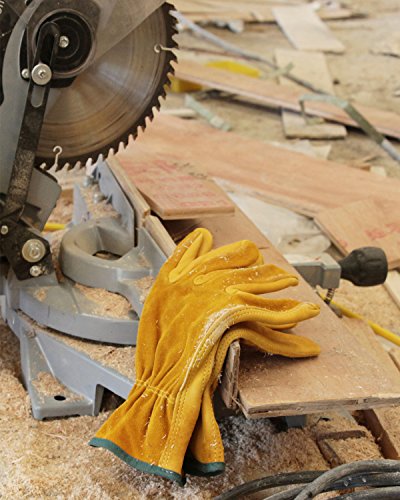 OZERO Leather Work Gloves, Genuine Cowhide Construction Glove with Elastic Wrist for Men & Women - Good Grip & Flexible for Heavy Duty/Truck Driving/Warehouse/Gardening/Farm - Yellow (1 Pair/Large)