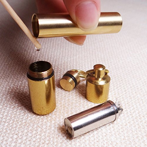 ★ BRASS CONTAINER 2.2*0.47*0.47 inches, Excellent waterproof performance and It can be used as a fuel Canister ,Pill Holder or Emergency Cash Capsule for Key Ring
