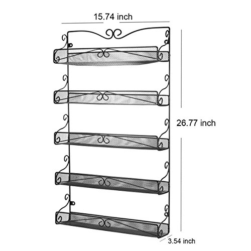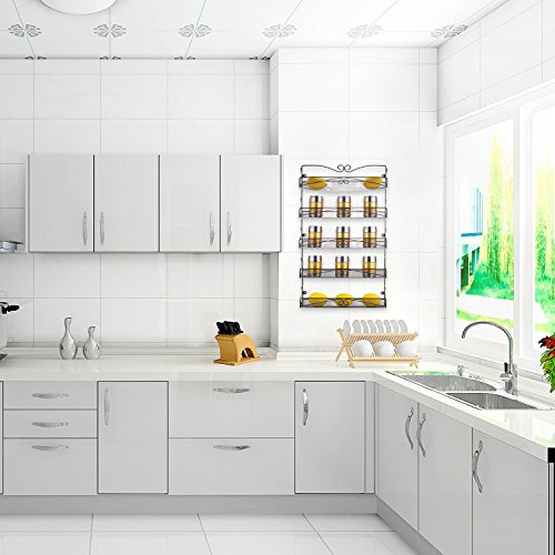 [Suitable for Kitchen] - Great for the kitchen, pantries, cupboards, and any storage spaces. Contains 5 shelving areas to hold your spices in securely.