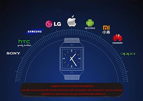 -. Feature : Support Sim card,for GSM/GPRS 850/900/1800/1900 Quad-band call / High quality and sensitive capacitive touch screen,perfect match technology / Function:Push Message, Message Reminder,Bluetooth,Camera, Anti-lost ,Dial Call, Call Reminder, Answer Call ,Sleep Monitoring,Passometer, MP3 / MP4 music playing,Alter ect. / Support:All Android 4.1 system smart phone(For Samsung, HTC, Sony, LG, HUAWEI, ZTE, OPPO, XIAOMI, and so on.)and iOS mobile phone(This APP can' t be installed by iOS, Apple system can' t sync SMS and Bluetooth push information, but other functions can be used by iPhone) / If there are any problem with the watch you bought in our store pls feel free to contact with me we will help you solve it